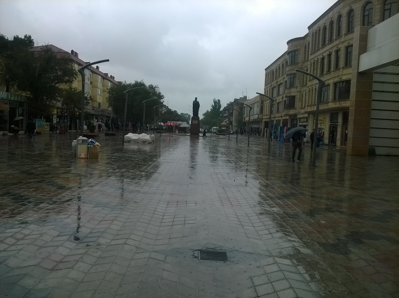 Əvvəllər geniş, açıq və nəfəs alan bu meydan indi müxtəlif iaşə obyektləri, köşklər və ticarət pavilyonları ilə doludur. Bu obyektlər, xüsusilə də meydanın tam mərkəzində tikilmiş "Markova” adlı geyim mağazası, həm insanların gediş-gəlişinə mane olur, həm də meydanın memarlıq bütövlüyünü pozur.